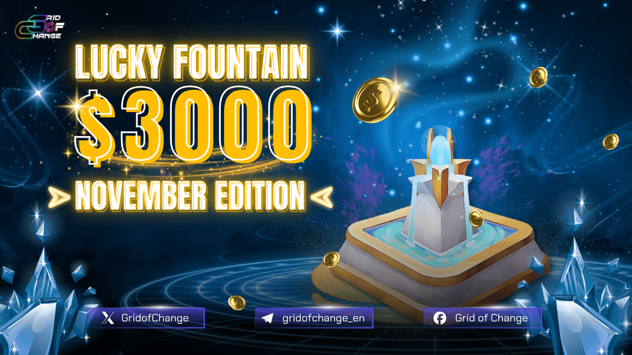 The iconic Lucky Fountain returns this November in Grid of Change with a $3000 prize pool. Join now, collect tickets, and unlock real rewards with every milestone. The Fountain flows once again It’s that exciting time of the month again — the Lucky Fountain has returned, and this time it’s overflowing with rewards worth up […]