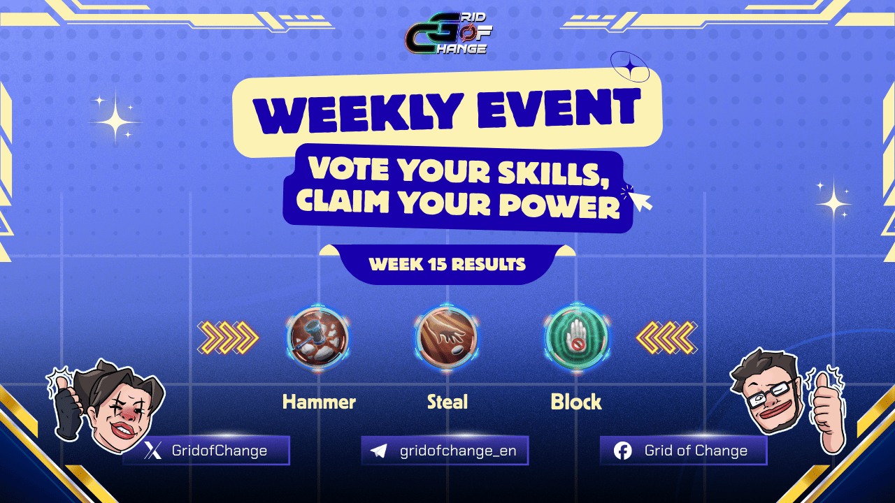 The weekly voting round has concluded, and the GRID community has selected its top skills once again. Below are the official results and the list of players who will receive this week’s rewards. Top 3 Skills of the Week After reviewing all valid votes, the three highest-voted skills are: 🥇 Hammer — 76 votes 🥈 […]