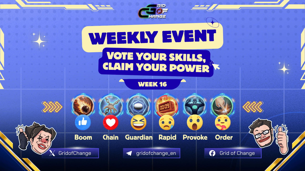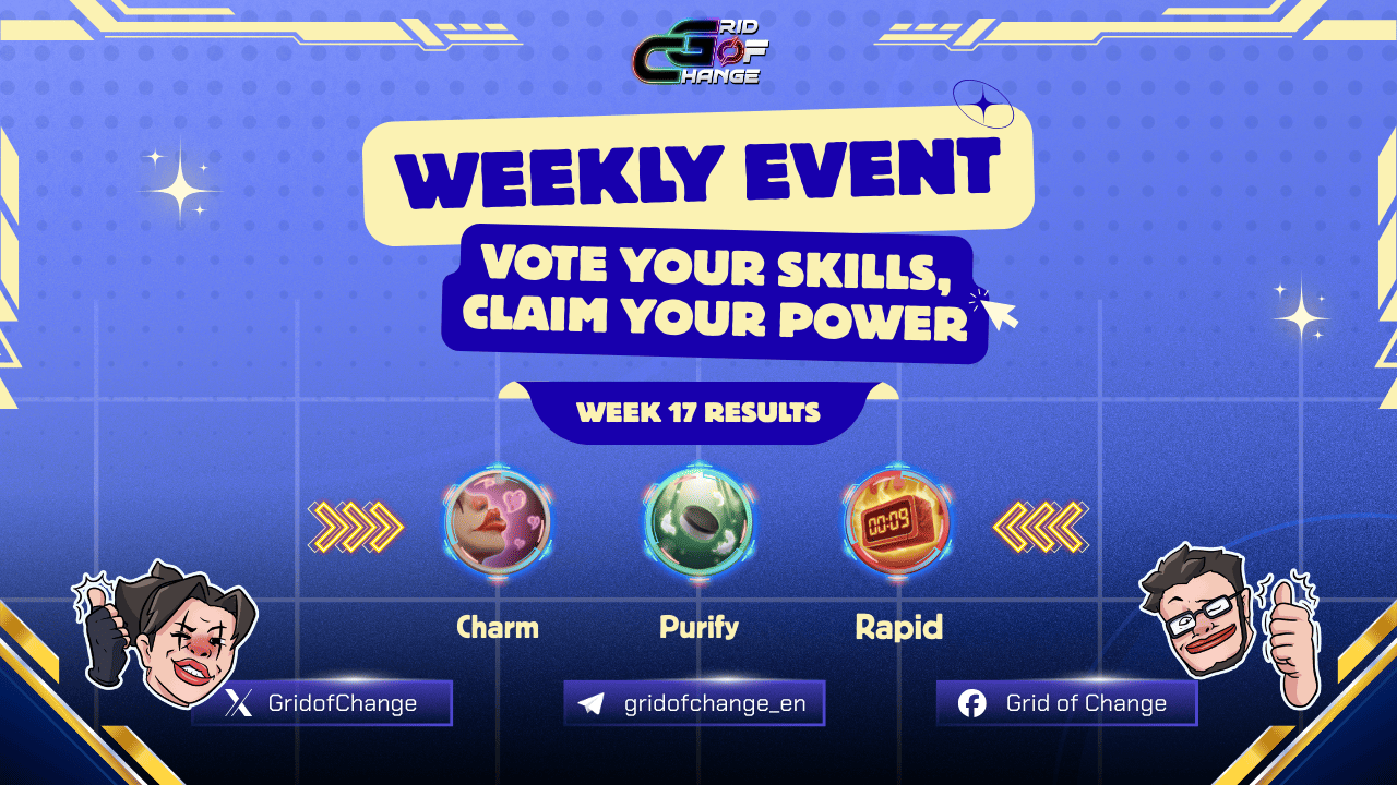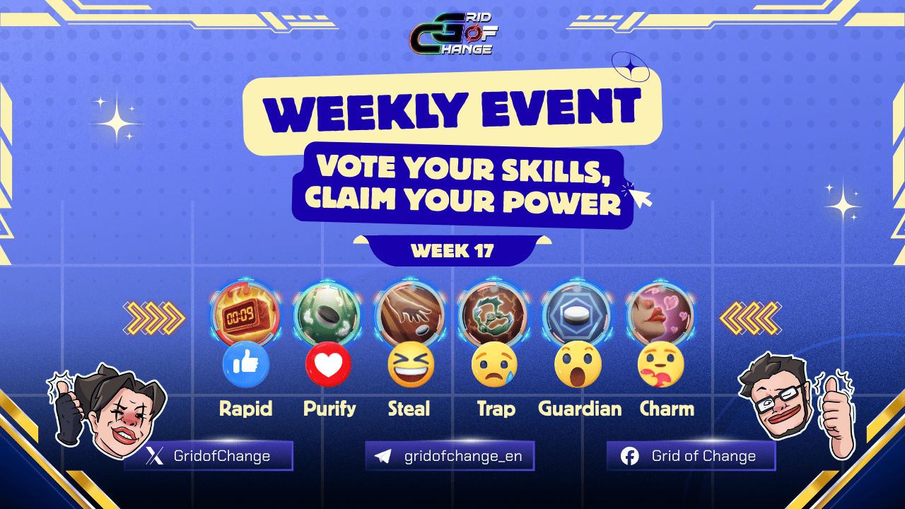 The weekly voting round has concluded, and the GRID community has selected its top skills once again. Below are the official results and the list of players who will receive this week’s rewards. Top 3 Skills of the Week After reviewing all valid votes, the three highest-voted skills are: 🥇Charm – 64 votes 🥈Purify – […]