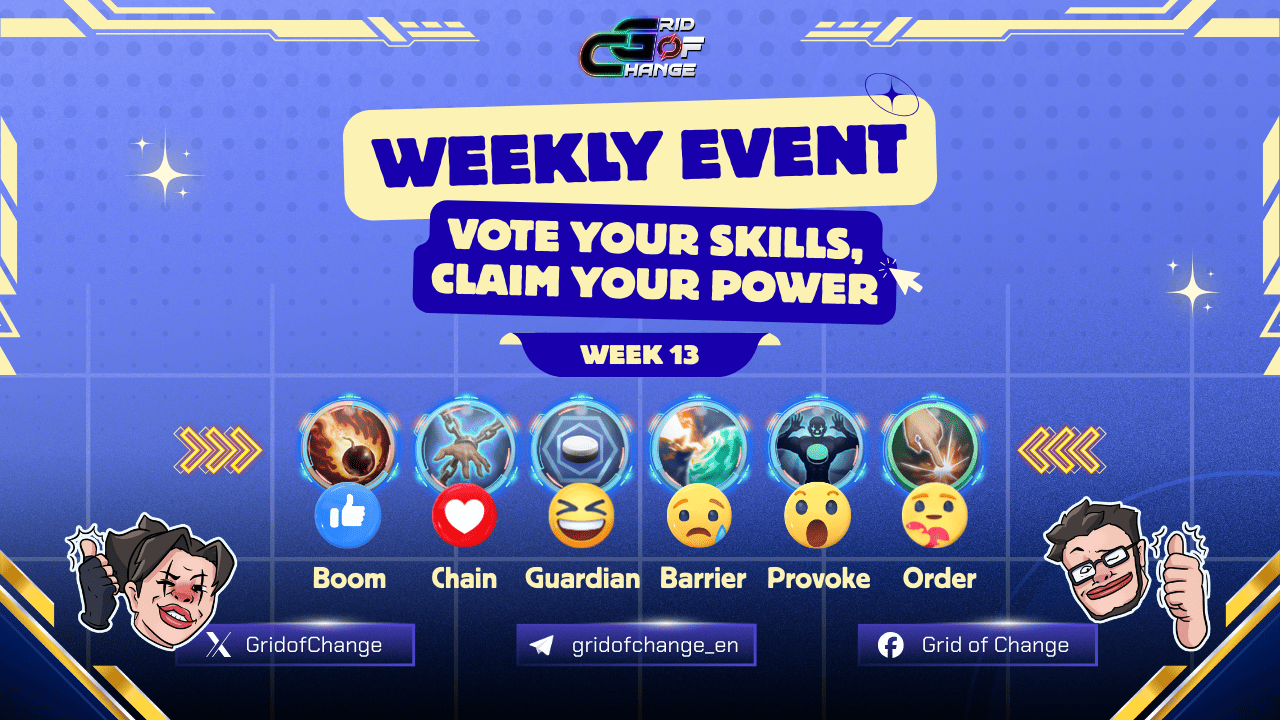 The weekly voting round has concluded, and the GRID community has selected its top skills once again. Below are the official results and the list of players who will receive this week’s rewards. Top 3 Skills of the Week After reviewing all valid votes, the three highest-voted skills are: Rewards Distribution A total of 50 […]