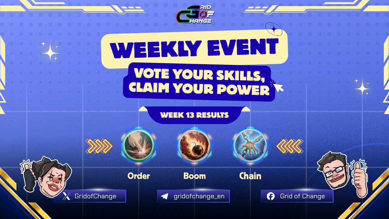 The weekly voting round has concluded, and the GRID community has selected its top skills once again. Below are the official results and the list of players who will receive this week’s rewards. Top 3 Skills of the Week After reviewing all valid votes, the three highest-voted skills are: 🥇 Order — 61 votes 🥈 […]