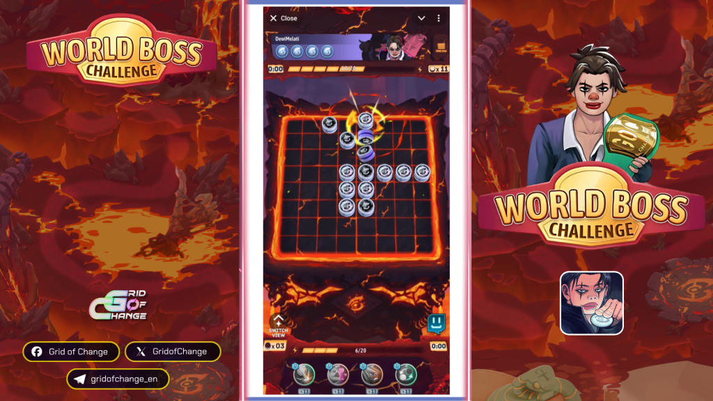 The World Boss Event is an exclusive battle hosted on the official GridOfChange Discord server, bringing together the most dedicated and daring players from around the world.