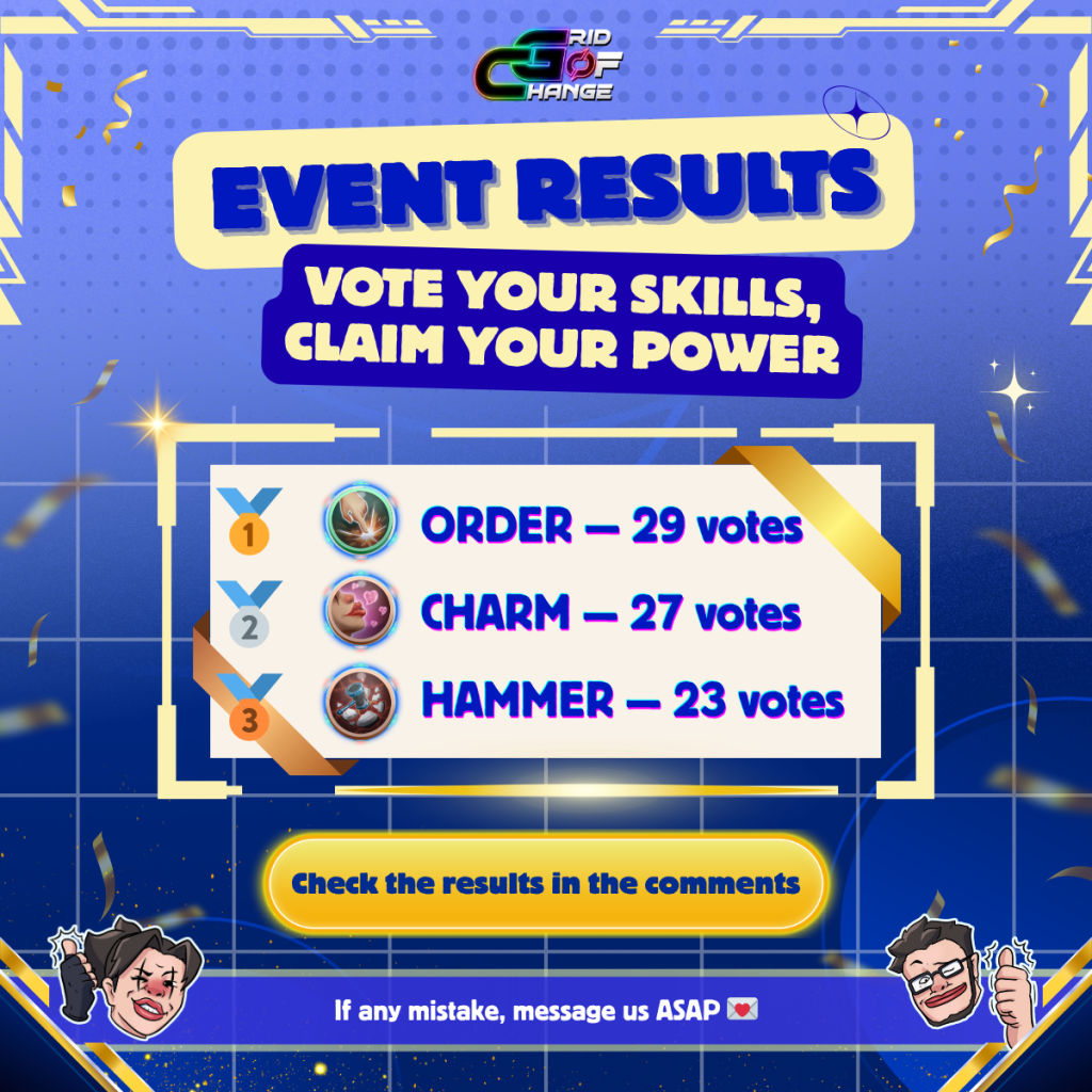The Vote Your Skills, Claim Your Power event is a reminder that in Grid of Change, fun and fairness go hand in hand. Whether you win a reward or not, your participation helps shape the community and the game’s future.
