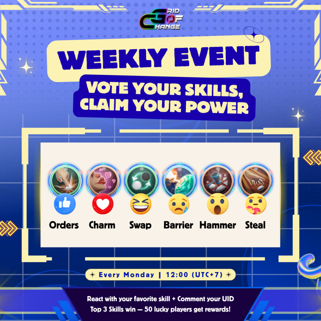 This event is more than just a vote; it is a chance for players to decide which skills will shine across the GRID. Whether you are a strategist who loves tactical plays or a collector looking to expand your inventory, this weekly event gives you the opportunity to shape the game together with thousands of other players.