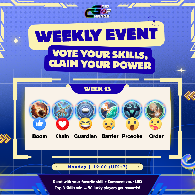 The weekly community voting event returns as Vote Your Skills, Claim Your Power enters Week 13. With the battlefield reset, GRID players once again have the opportunity to influence which skills will take the spotlight through collective voting.