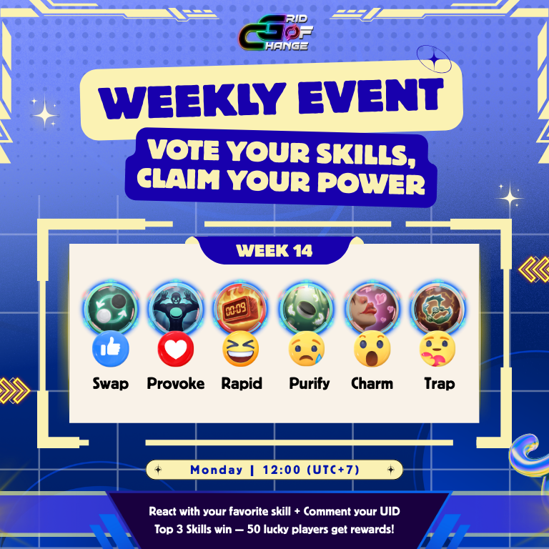 The weekly community voting event returns as Vote Your Skills, Claim Your Power enters Week 14. With the battlefield reset, GRID players once again have the opportunity to influence which skills will take the spotlight through collective voting.
