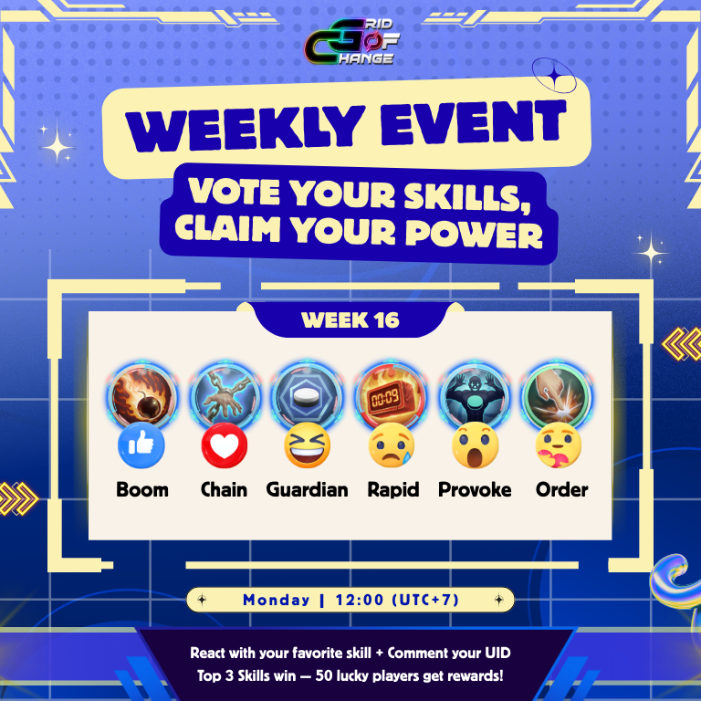 The weekly community voting event returns as Vote Your Skills, Claim Your Power enters Week 16. With the battlefield reset, GRID players once again have the opportunity to influence which skills will take the spotlight through collective voting.