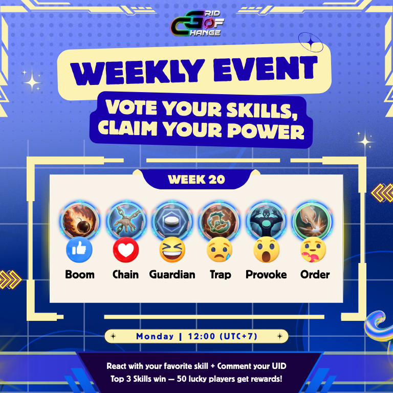 The weekly community voting event returns as Vote Your Skills, Claim Your Power enters Week 20. With the battlefield reset, GRID players once again have the opportunity to influence which skills will take the spotlight through collective voting.