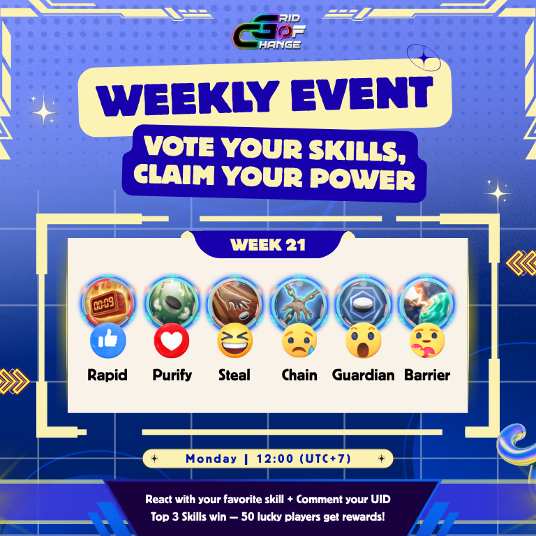 The weekly community voting event returns as Vote Your Skills, Claim Your Power enters Week 21. With the battlefield reset, GRID players once again have the opportunity to influence which skills will take the spotlight through collective voting.