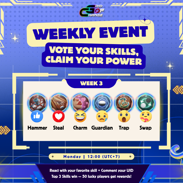 Grid of Change launches Week 3 of the Vote Your Skills event. Choose your favorite skill, join the vote, and win free in-game rewards.