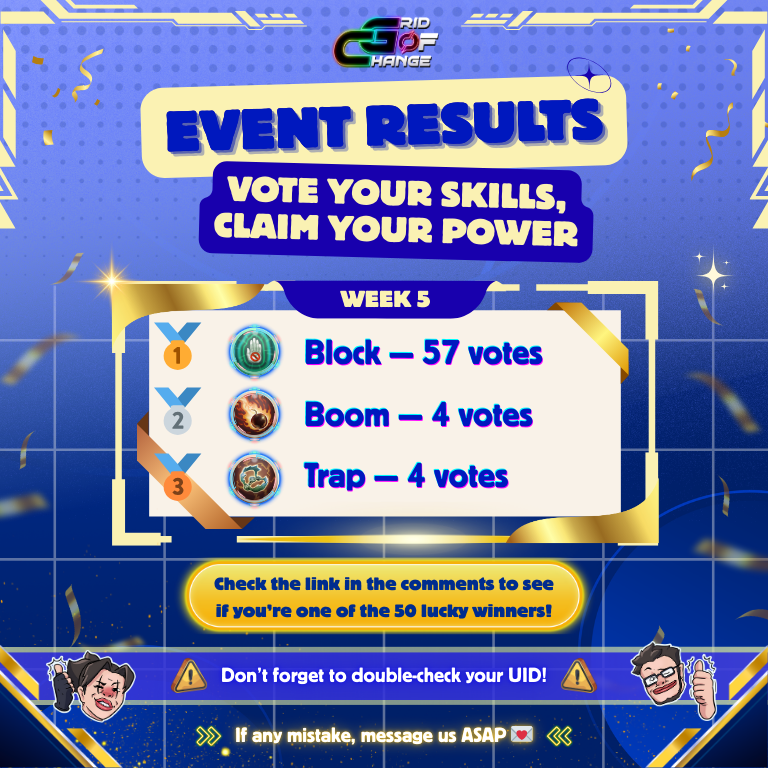 Block, Boom, and Trap emerge as the top skills chosen by the GRID community for Week 5.